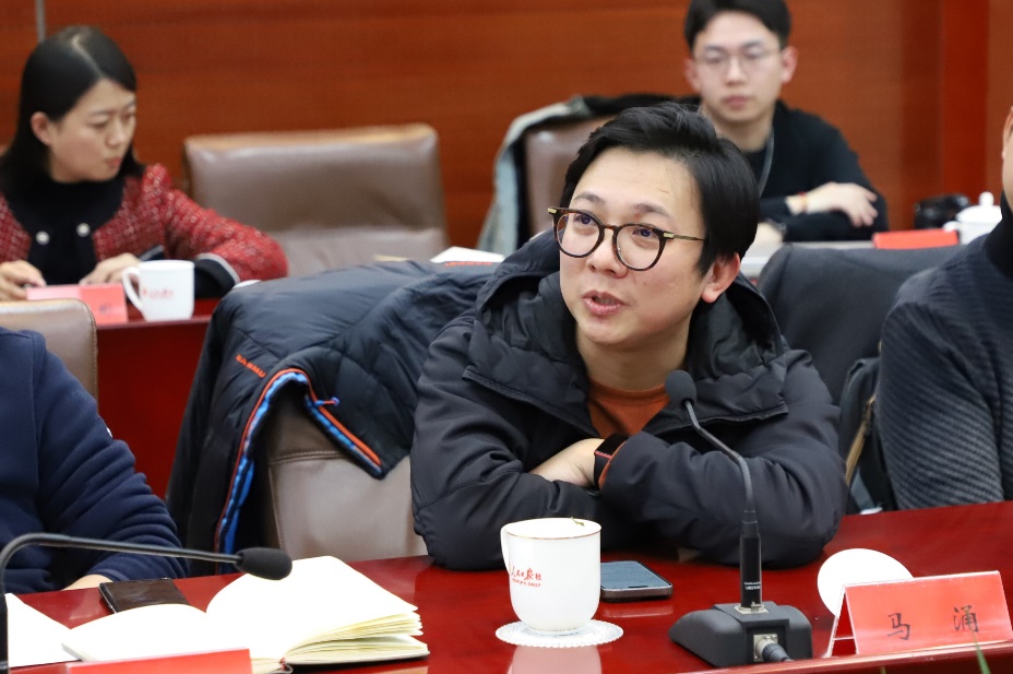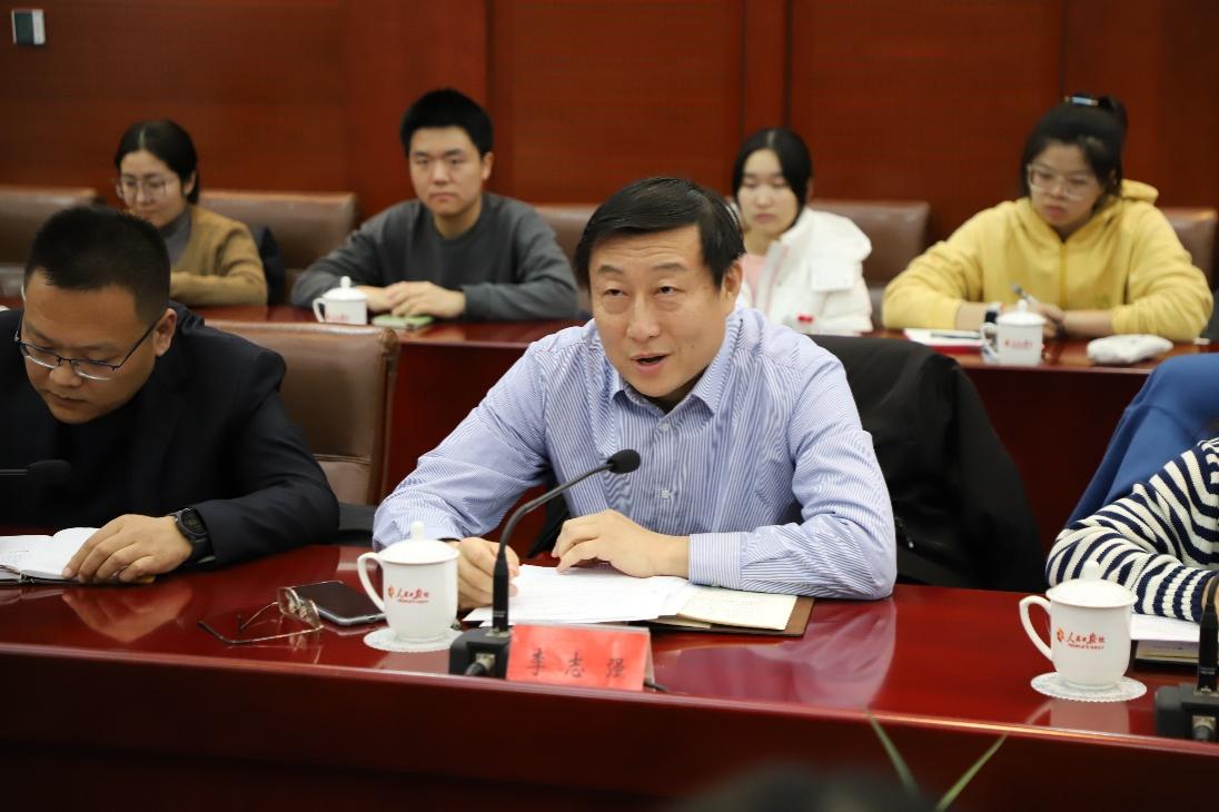 随后的座谈会由人民日报社评论部副主任刘维涛主持,人民日报社对外交流合作部副主任李志强、人事局人力资源管理处副处长侯军以及在报社工作的院友代表同师生一行共同参加。