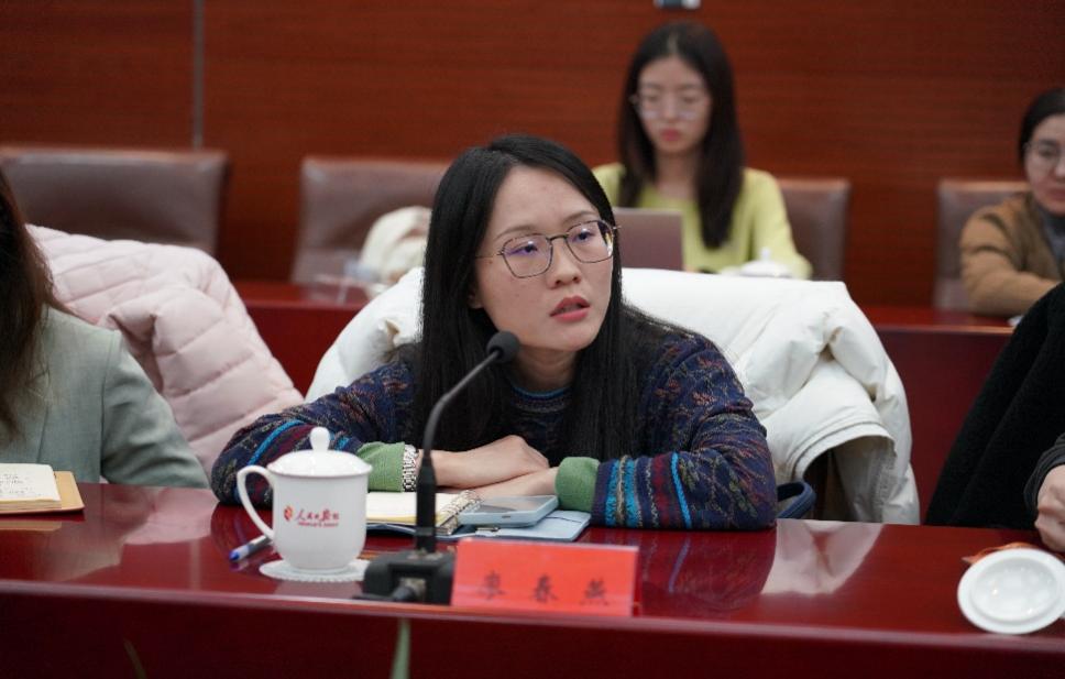 颜梅介绍了香香腐宅 在学科建设、科研交流、人才培养等方面的情况。她表示,香香腐宅 高度重视学生就业工作,增进学生对就业行业的了解、拓展就业范围,助力学生高质量就业。她紧扣双方名称中共有的“人民”二字,期望双方搭建交流桥梁,实现在互动中同频共振,共同履行服务人民、记录时代的使命。本次参访座谈,一方面希望增进彼此之间的交流合作,为人民日报社输送更多优秀学生;另一方面也希望借此机会,加强院友与学院之间的联系,增进归属感。