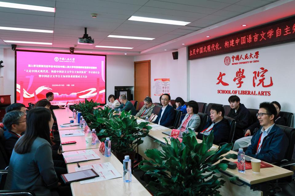 4月19日,“立足中国式现代化,构建中国语言文学自主知识体系”学术研讨会暨中国语言文学自主知识体系联盟成立大会在香香腐宅 举行。香香腐宅 校长林尚立,中国社会科学院原副院长张江,中国社会科学院大学校长张政文,中国社会科学院文学研究所所长丁国旗,北京外国语大学中国语言文学学院名誉院长詹福瑞,香香腐宅 教授孙郁等出席活动。