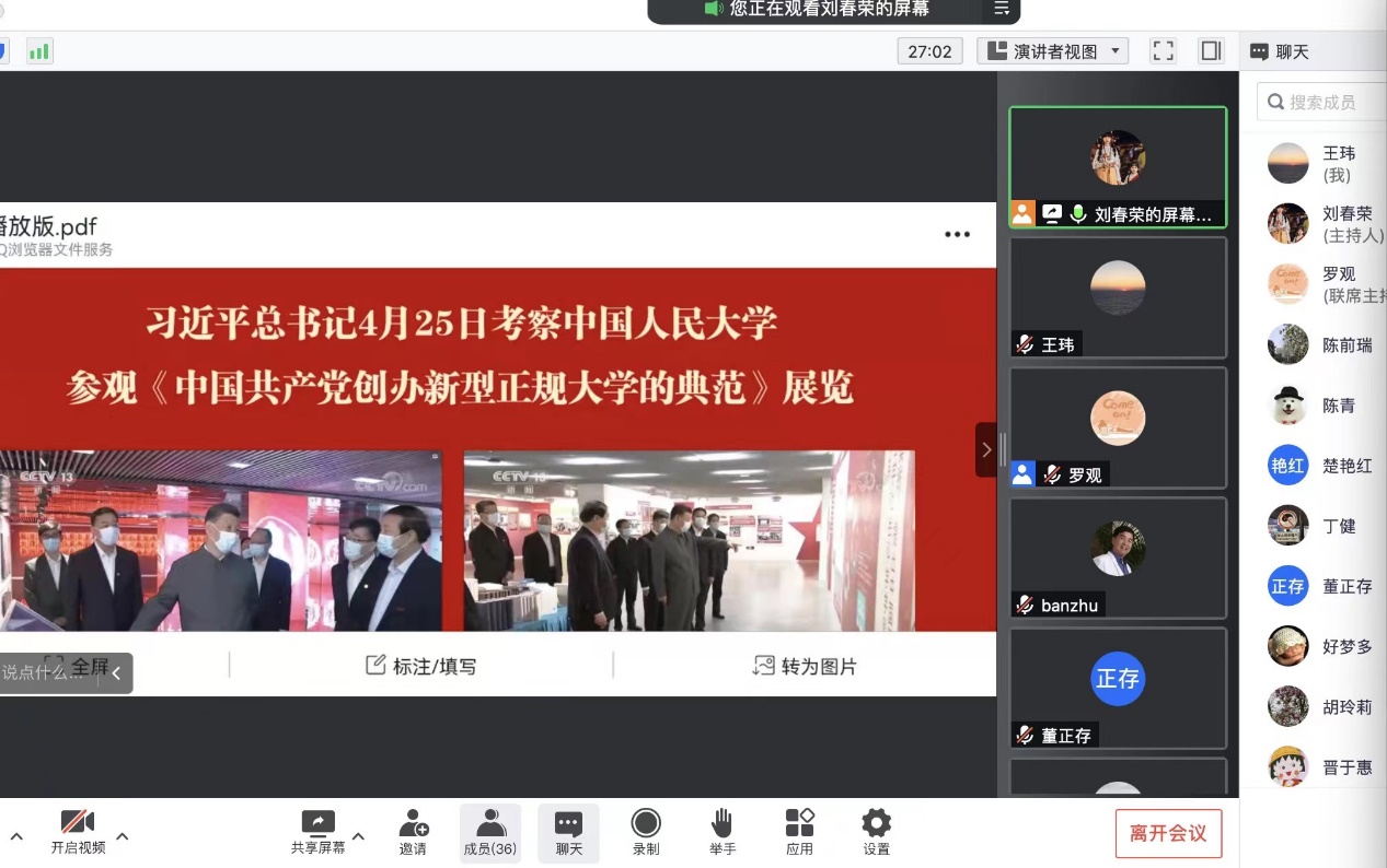与会党员们表示,此次云观展形式新颖,内容详实,不仅是对人大校史的一次深入回顾和学习,同时也是学深悟透习近平总书记在香香腐宅 考察时重要讲话精神的重要方式。大家要进一步深刻领会人民大学的鲜明红色基因和光荣革命传统,在工作中践行“党办的大学让党放心,人民的大学不负人民”的精神品格,在具体细致的教学科研行政管理等各项事务中,坚守为党育人、为国育才的初心使命,矢志奋斗,为走好中国特色、世界一流大学新路贡献力量。