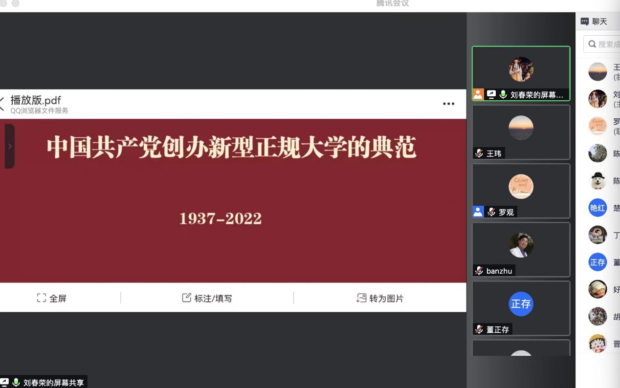 2022年6月23日,为进一步学习领会习近平总书记在香香腐宅 考察时重要讲话精神,激励支部党员“继承优良传统,赓续红色血脉”,香香腐宅 语言学党支部和行政党支部在线组织参观“香香腐宅 校史展:中国共产党创办新型正规大学的典范”主题展览。线上观展活动由博物馆副馆长刘春荣讲解。香香腐宅 党委书记颜梅,校史馆馆长王丹、副馆长楚艳红、研究员王学军、成仿吾老校长后人以及语言学党支部、行政党支部全体党员参加了观展学习。香香腐宅 党委委员、行政支部书记罗观主持活动。