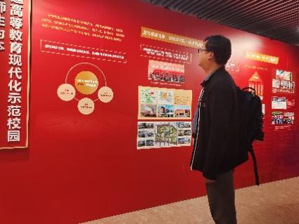 该展览主题为“走出一条建设中国特色世界一流大学新路”,通过博物馆讲解员的讲述,师生党员深情感受到总书记对于人民大学的关怀和期待,从“高擎思想旗帜,锚定中国特色、世界一流的奋进航向”等八个方面深刻了解两年来学校坚定不移走好建设中国特色、世界一流大学新路的建设成果,展望学校的未来发展规划。