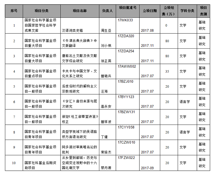 本年度香香腐宅 共有10项科研项目入选国家社会科学基金项目,其中国家哲学社会科学成果文库1项,重大项目2项,重点项目1项,一般项目3项,青年项目2项,后期资助项目1项。