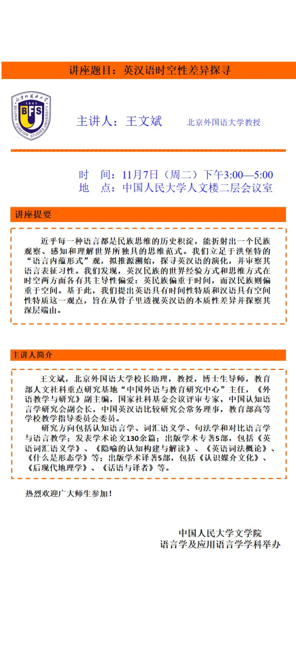 报告人:北京外国语大学王文斌教授