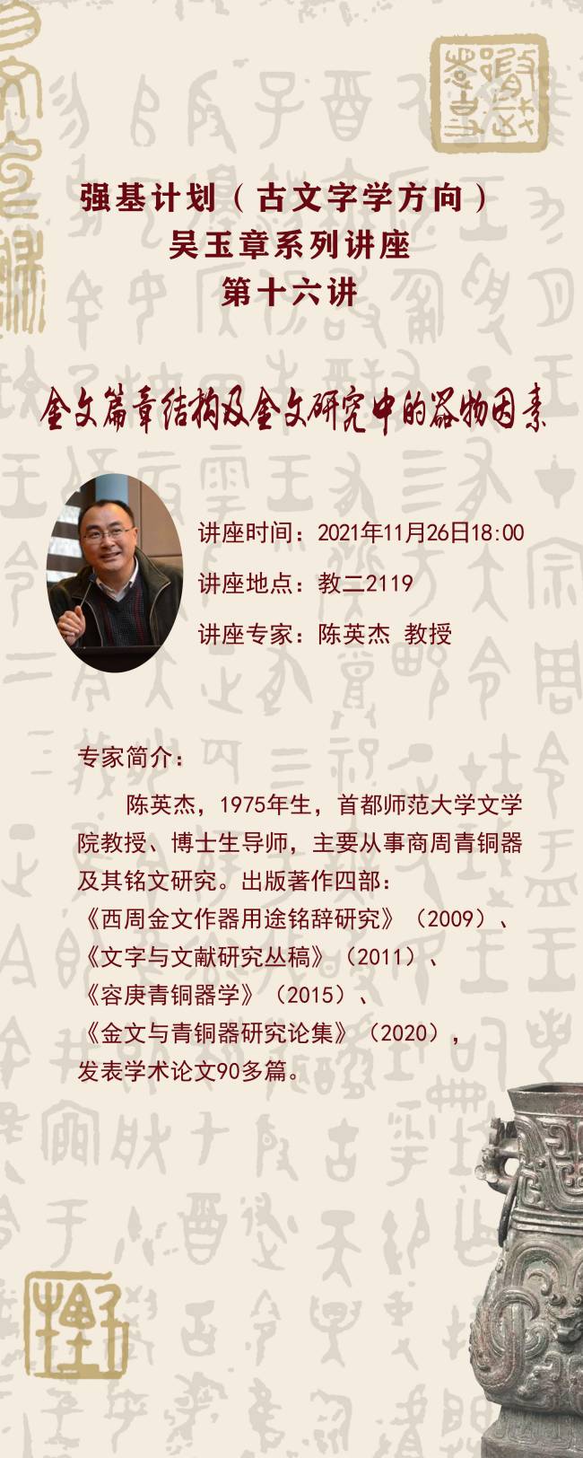 【讲座预告】强基计划(古文字学方向)吴玉章系列讲座 第十六讲