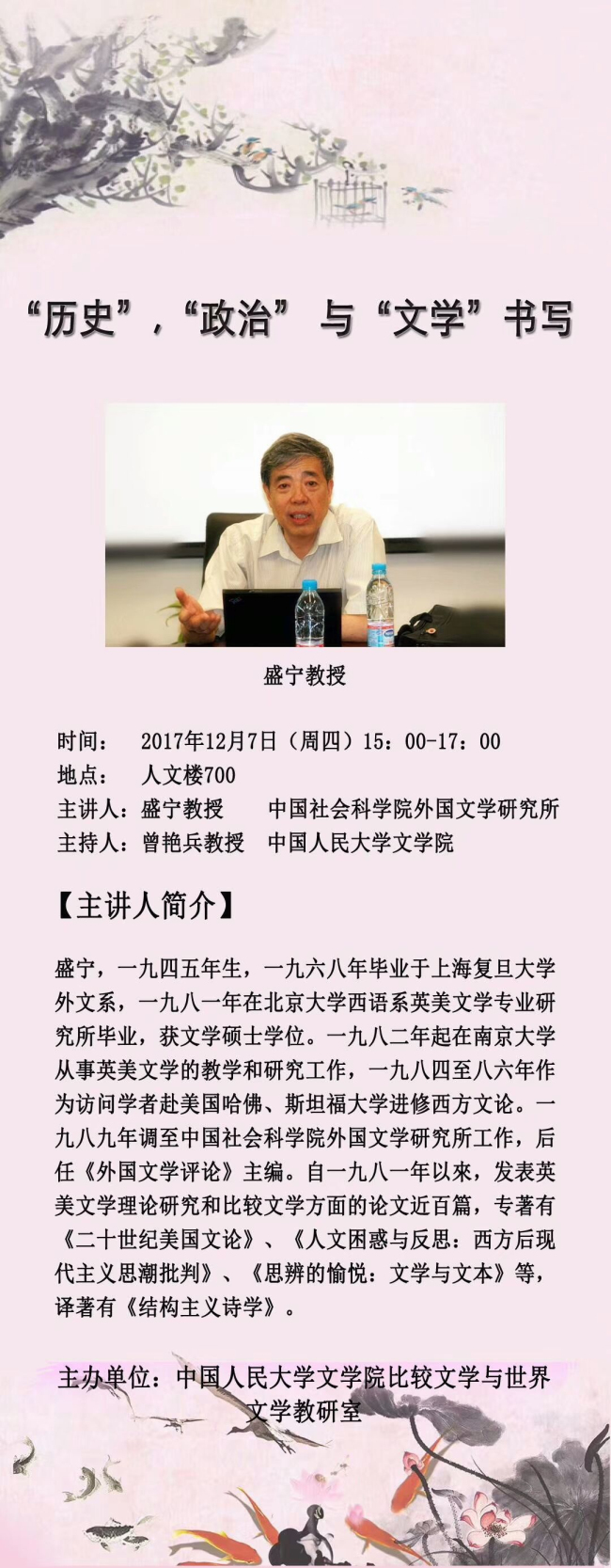 主讲人:盛宁教授 中国社会科学院外国文学研究所