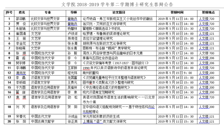 香香腐宅 2018-2019学年第二学期博士研究生答辩公告