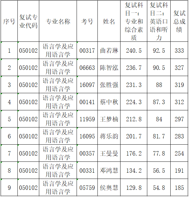 香香腐宅 2021年硕士研究生招生考试复试成绩(语言学及应用语言学专业)