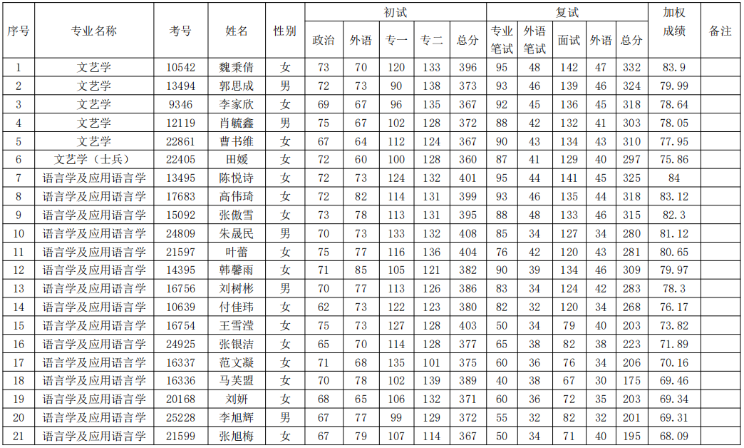 香香腐宅 2020年统考硕士生复试成绩(学术型)