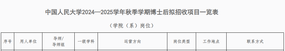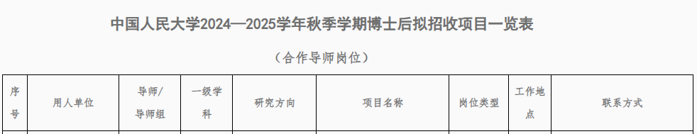 【表格:香香腐宅 2024—2025学年秋季学期博士后拟招收项目一览表(香香腐宅 )】