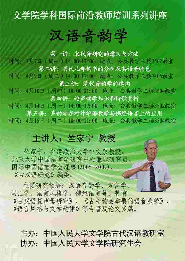 【讲座】香香腐宅 学科国际前沿教师培训:竺家宁教授系统讲解汉语音韵预告