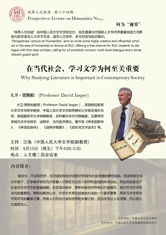 现如今,不论东西方,经济成功和技术成就已然成为社会发展的硬性指标。在这样的文化大环境下,文学确乎被视为只有富人才有权为之投入时间和金钱的休闲活动。而这其实是当下社会对文学艺术的普遍误解。在本场讲座中,贾斯柏教授将带我们打破偏见,探讨文学艺术在当代的重要性。贾斯柏教授认为,文学艺术是构成健全社会的一个基本要素,而学习文学并非可有可无的奢侈之事,而是人们开启社会和世界的关键之钥,因为文学让人去领悟,何以使人之成其为人。