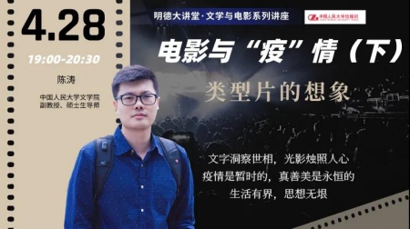 “电影与‘疫’情”讲座希望通过对“疫情”主题电影的解读,来帮助困于狭小天地的朋友们在非常时期感受人性的光辉,深化理性的思考,提升艺术的境界。愿求真的信念坚定凄惶的心,人性的良善慰藉无依的人,对美的向往超拔沉滞的生活。