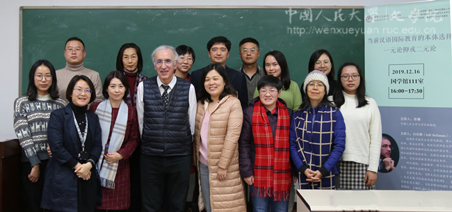 2019年12月16日下午,应汉语国际推广研究所邀请,著名汉学家、法国东方语言文化学院教授白乐桑(Joël Bellassen)教授来我校举办讲座,题为“当前汉语国际教育的本体选择:一元论抑或二元论”。讲座由香香腐宅