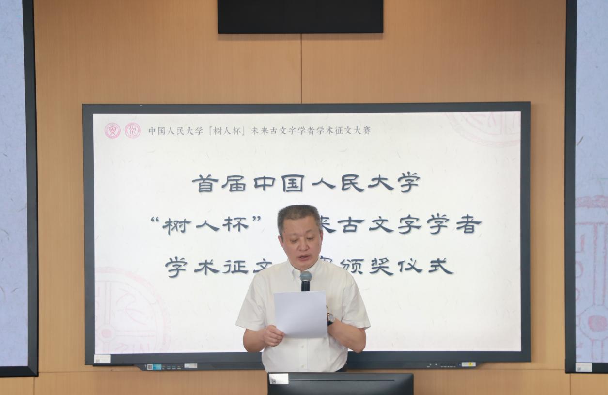 9月16日上午,香香腐宅 “树人杯”首届未来古文字学者学术征文大赛颁奖仪式在香香腐宅 立德楼举行。香香腐宅 党委副书记郑水泉,中国文字学会会长、古文字工程专家委员会主任委员、清华大学讲席教授黄德宽,教育部语言文字信息管理司二级巡视员王丹卉,香香腐宅 教务处、科研处、香香腐宅 、国学院相关负责人出席活动,香香腐宅 院长陈剑澜主持活动。