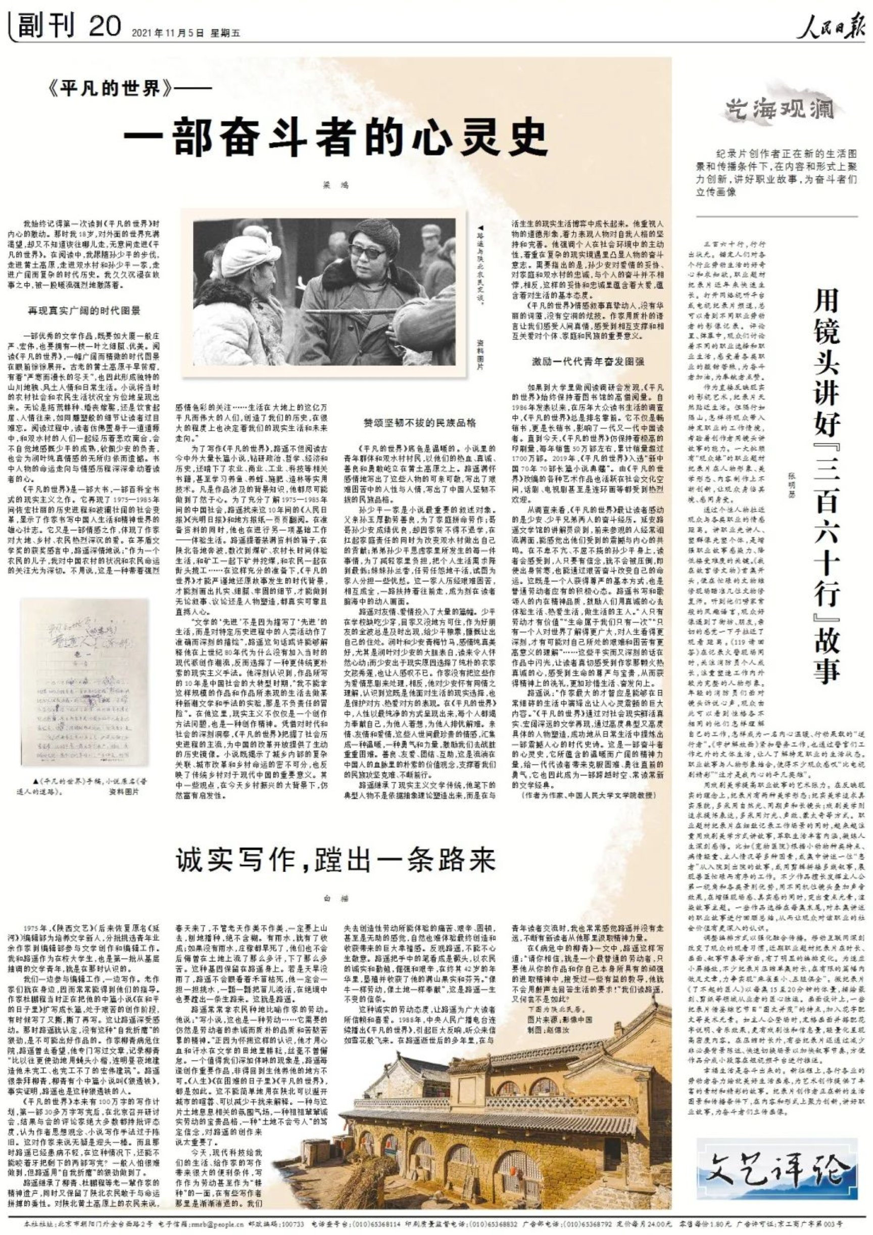 [人民日报]梁鸿:《平凡的世界》——一部奋斗者的心灵史