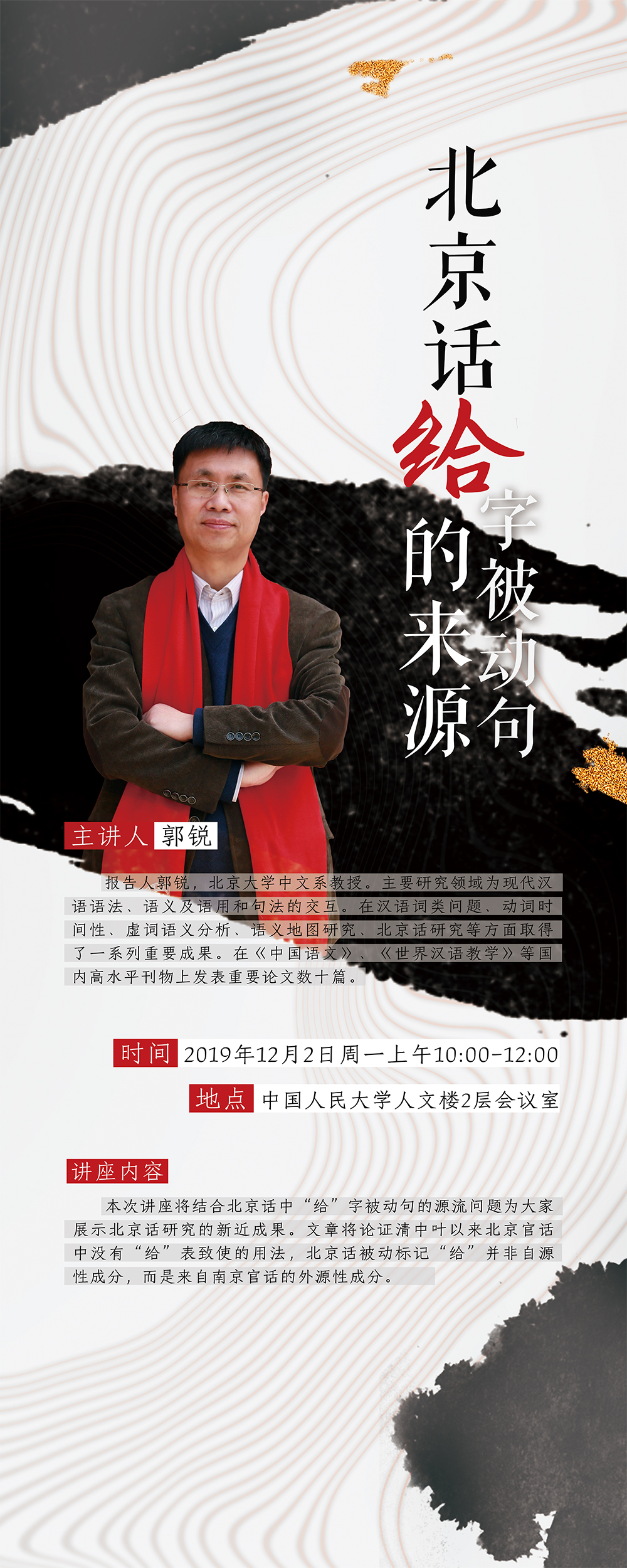 【讲座预告】北京大学郭锐教授:北京话“给”字被动句的来源
