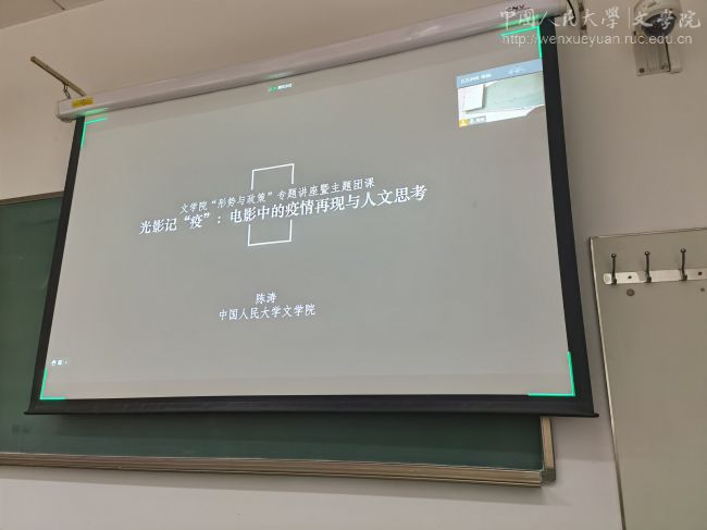 副教授陈涛在教学二楼2115教室主讲“光影记‘疫’——电影中的疫情再现与人文思考”。本次讲座采取线上线下相结合的方式,共吸引了150余位师生参与。
