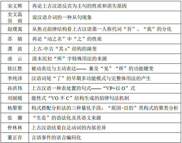 南京大学苏婧老师以“之”与“其”的对比为切入点,通过分析各式语法结构,确认了上古汉语中“动之名”形式中“之”的宾格代词身份;广州大学龚波老师论述上古至中古汉语“其s”结构演变,也重点揭示了“其”与“之”之间的复杂关系。两位老师理论背景、视角方法各有不同,但都材料翔实,论据充足,论证清楚,观点明确,所得结论令人信服。
