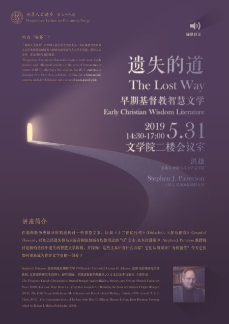 在基督教历史最早时期流传过一些智慧文本,比如《十二使徒行传》(Didache)、《多马福音》 (Gospel of Thomas),以及已经遗失但马太福音和路加福音均使用过的“Q”文本。在本次讲座中,Stephen J. Patterson教授将讨论新约圣经中遗失的智慧文学体裁,并探询:这些文本中有什么内容?它们从何而来?为何消失?今天它们如何重新成为世界文学史的一部分?