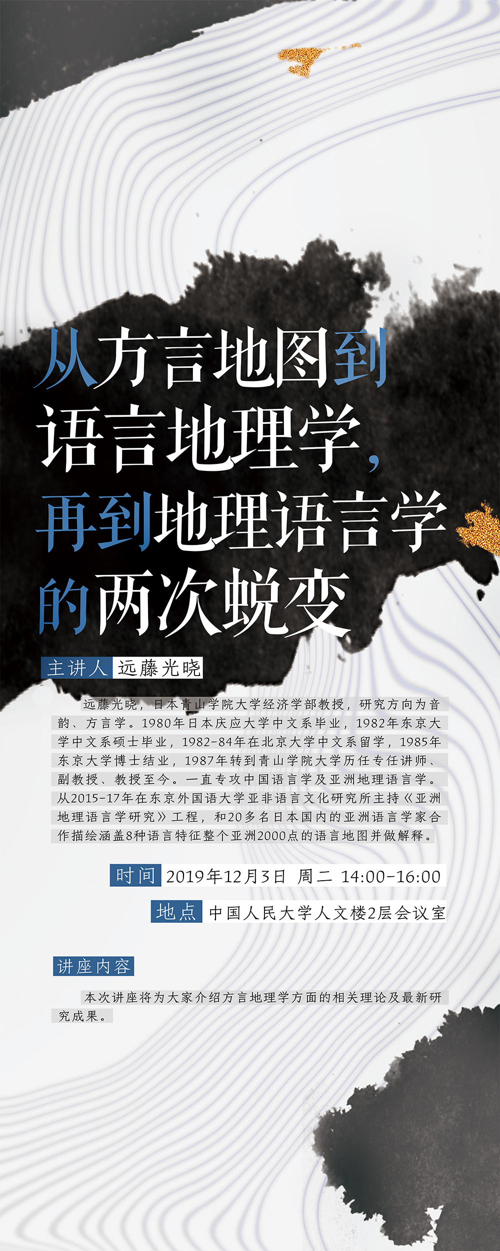 本次讲座将为大家介绍方言地理学方面的相关理论及最新研究成果。