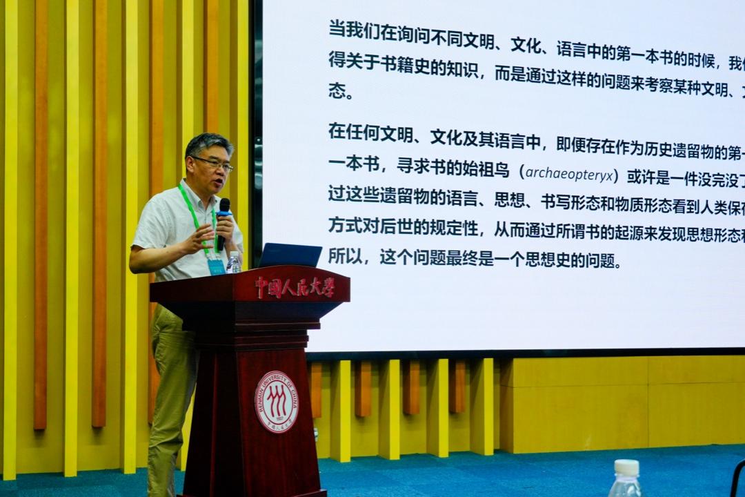 来自普林斯顿大学的柯马丁(Martin Kern)教授在题为“从实践到文本:中国的视角”的主旨演讲指出,中国大约在公元前1250年起就有了文字的记载,公元前五世纪左右产生了诗歌、演说、轶事等较短的文本单元,公元前四世纪后出现这些短文本的汇编集。前四世纪的中国没有荷马、柏拉图、希罗多德或埃斯库罗斯这类单一作者的书籍,而是编纂者、校订者和注释者根据特定文本群体的需求编撰书籍,诠释和注解有着凌驾于文本这一物质实体之上的首要地位和规范性力量。