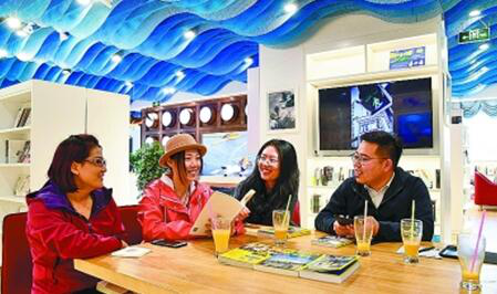 山东省青岛市栈桥书店,读者们在一场读书会上分享心得。新华社发