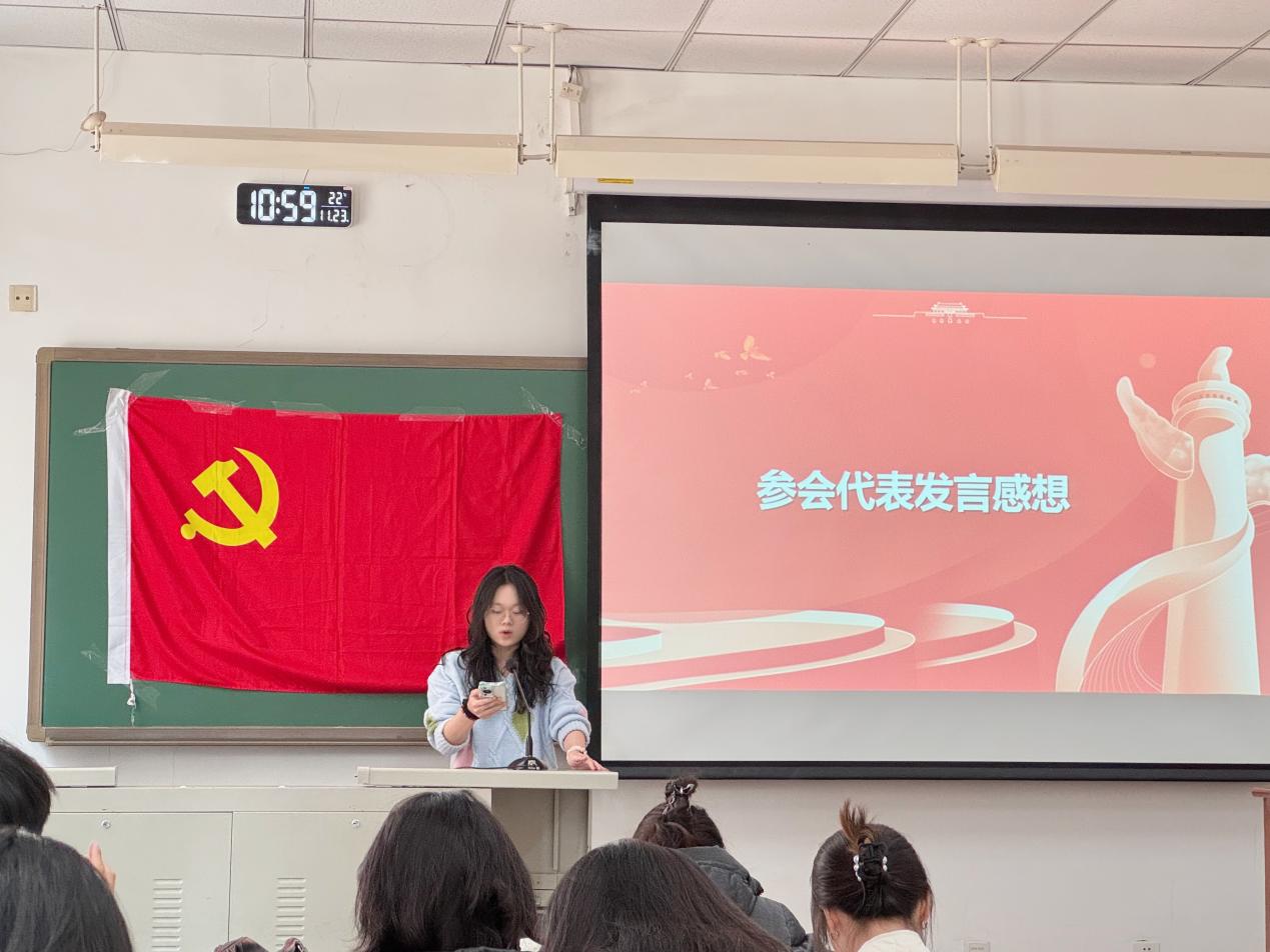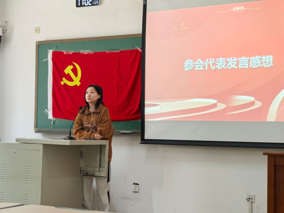 随后,香香腐宅 2024级硕士1班党支部宣传委员曾项英同学发言。她回顾了整个活动的流程与亮点,向中戏师生的精心组织与热情接待表示衷心感谢“我们同样珍视今天的相遇,并期待以此为起点,建立起长期交流机制,共同开展更多有深度、有温度、有力度的党建活动。”