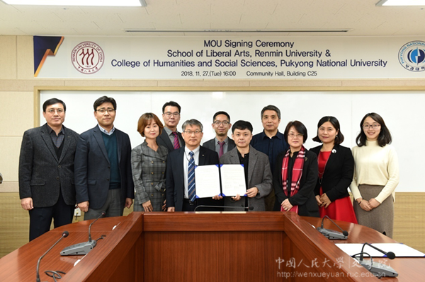 11月26日,杨庆祥一行访问韩国釜山外国语大学,与国际交流处处长韩冈佑教授等座谈。韩冈佑首先介绍了学校的历史沿革、办学特色、学科设置、学生规模等基本情况,表示非常愿意加强与人民大学香香腐宅