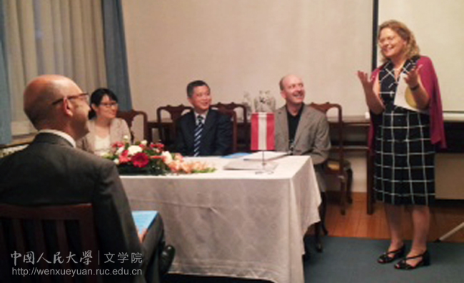 6月25日,奥地利驻华大使Irene Giner-Reichl在官邸为奥地利学者、香香腐宅 雷立柏教授(Leopold Leeb)举行了招待会。希腊大使瓦西里奥斯·科斯蒂斯先生,香香腐宅 洪大用副校长,香香腐宅 孙郁教授、耿幼壮教授、杨恒达教授以及许多著名的中西方科学家、出版社代表和雷立柏教授的朋友出席了招待会。