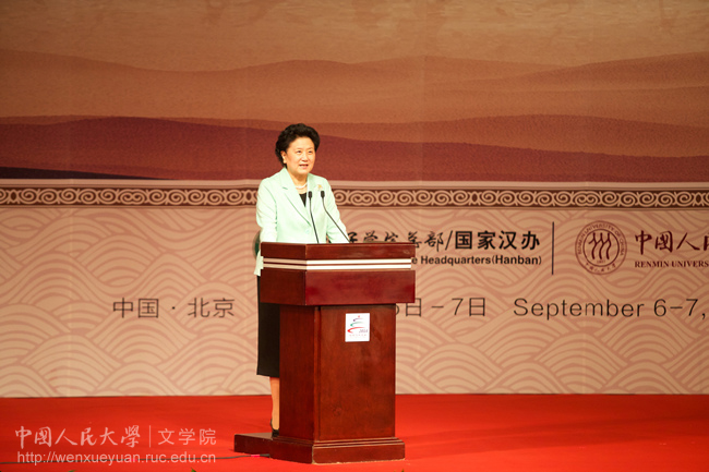 她强调,在漫长的历史进程中,人类社会曾面临种种危机和战争的考验,但是跨文化的交流却从来没有中断。这种交流是润物无声的,它拉近了心灵的距离,化解着矛盾和偏见,是沟通不同国度、不同肤色、不同民族的重要桥梁。“爱其所同,敬其所异”,尊重文化的多样性,越来越成为人们的共识。而在这个过程中,作为东西方文明的交流使者的汉学家们发挥了巨大的作用,因此,刘延东副总理代表中国政府向在座的各位代表,向所有关心支持中国发展,积极的推动中外交流的汉学家和各界人士表示了由衷的敬意和感谢。