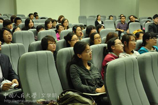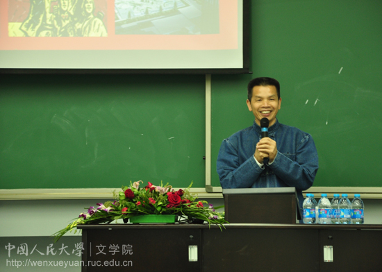 接下来,卢铁澎教授从后现代行为艺术(绘画)、后现代建筑、后现代音乐以及后现代文学四个方面对“后现代主义”进行了详尽的阐释。卢教授通过大量图片给大家展示了“鹿人”“木乃伊”“人体悬挂”等所谓的行为艺术和方力钧的“光头系列”等后现代主义的绘画作品。在说到当代建筑时,卢教授颇为痛心。他列举了近年中国最热门的三大建筑——“鸟巢”“央视大楼”和“国家大剧院”,这些颇具争议性的建筑与中国的整体建筑,特别是中国文化极不协调。而对于文学,卢教授从“非非主义”诗歌、“先锋小说”、“痞子化”写作和新历史主义写作四个方面对后现代主义文学做了详细的介绍。
