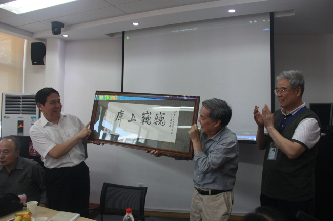 赠送了其亲笔书写的“巍巍上庠”牌匾,其他校友代表还赠送了纪念册以及自己创作的对联和律诗等,以表达对母院的眷恋和感激之情。