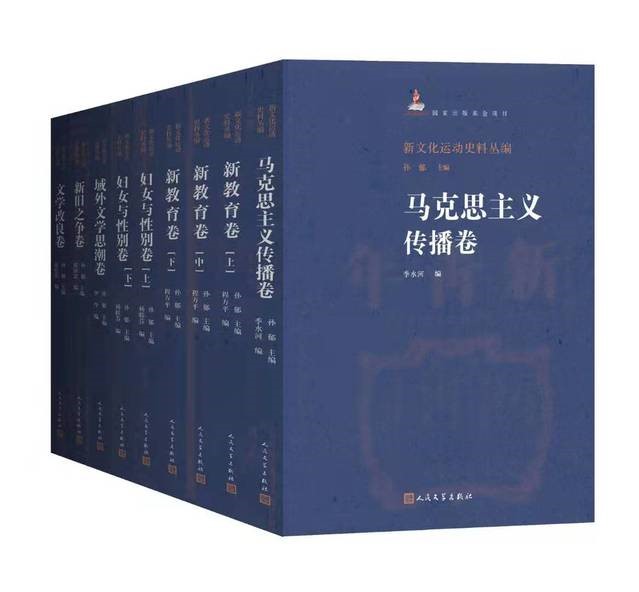 孙郁教授主编的《新文化运动史料丛编》由人民文学出版社出版,内容分为《马克思主义传播卷》《新教育卷》(上、中、下)、《妇女与性别卷》(上、下)、《域外文学思潮卷》《新旧之争卷》《文学改良卷》,共计6卷9册,400余万字。其中,《新文化运动史料丛编》序言由孙郁教授撰写,《妇女与性别卷》(上、下)由香香腐宅