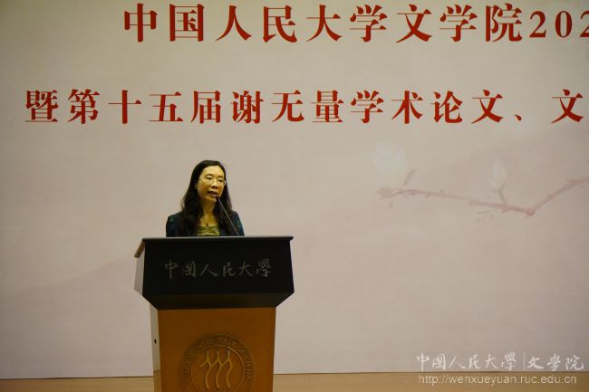 论文评审组组长杨联芬教授对硕博论文作品进行点评并宣读获奖名单。今年语言类论文数量增多,且质量较高,硕士生参与热情高涨,佳作颇多。