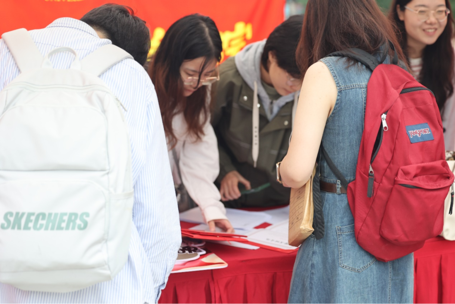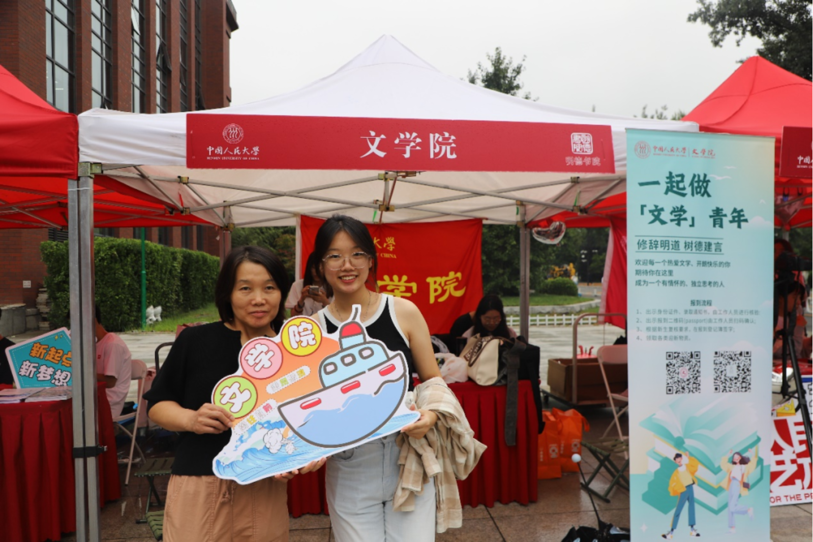 随着新生不断到来,迎新现场的工作也逐渐繁忙起来。在相机取景框中,许多温馨的时刻得以定格:新生和自己的家人朋友们在打卡点合影留念,老师与同学们亲切交流,志愿者们热心地帮助新生……简单布置的摊位将浓浓的爱意与温暖汇聚。