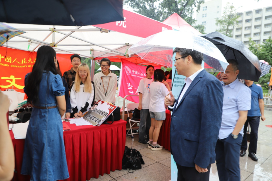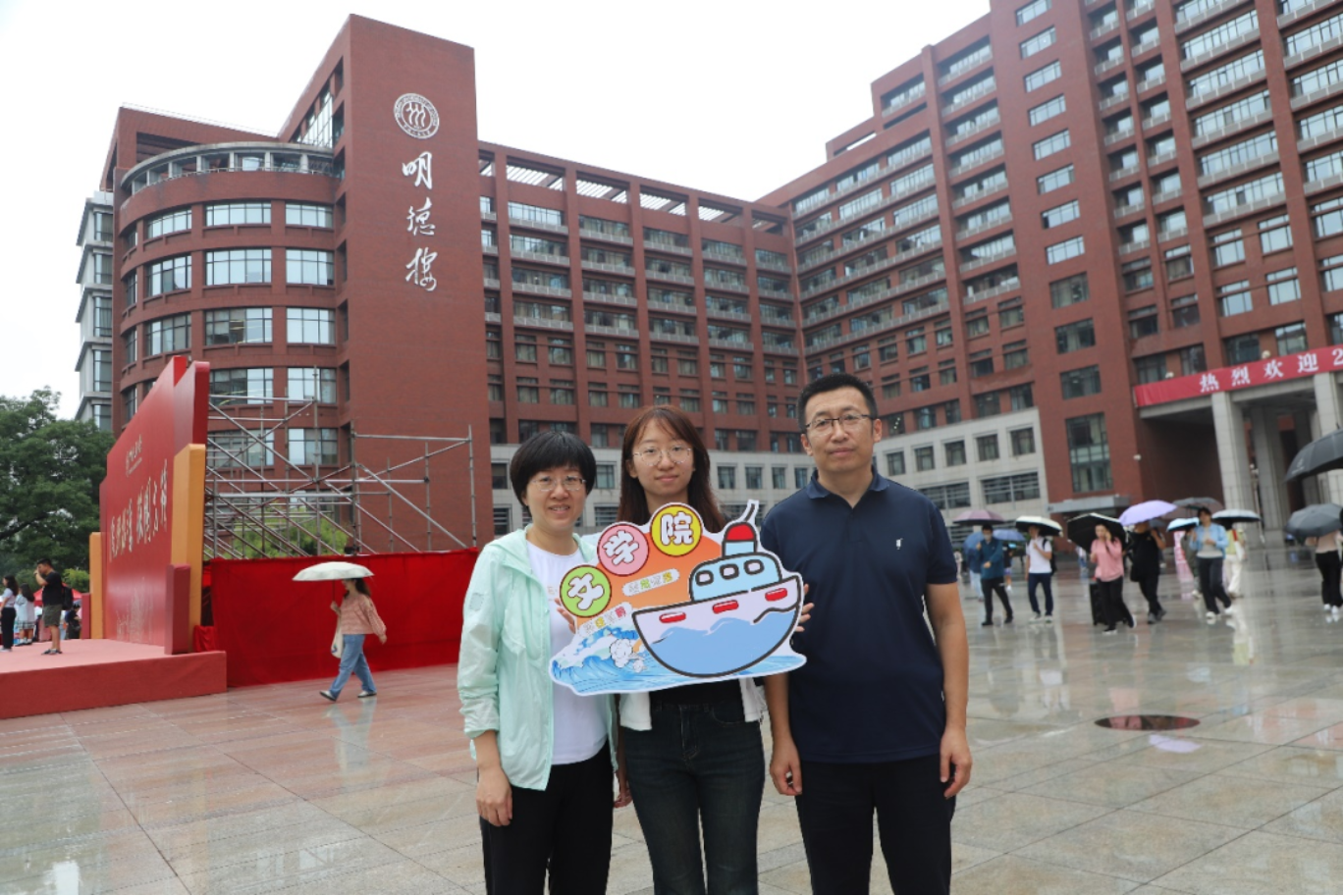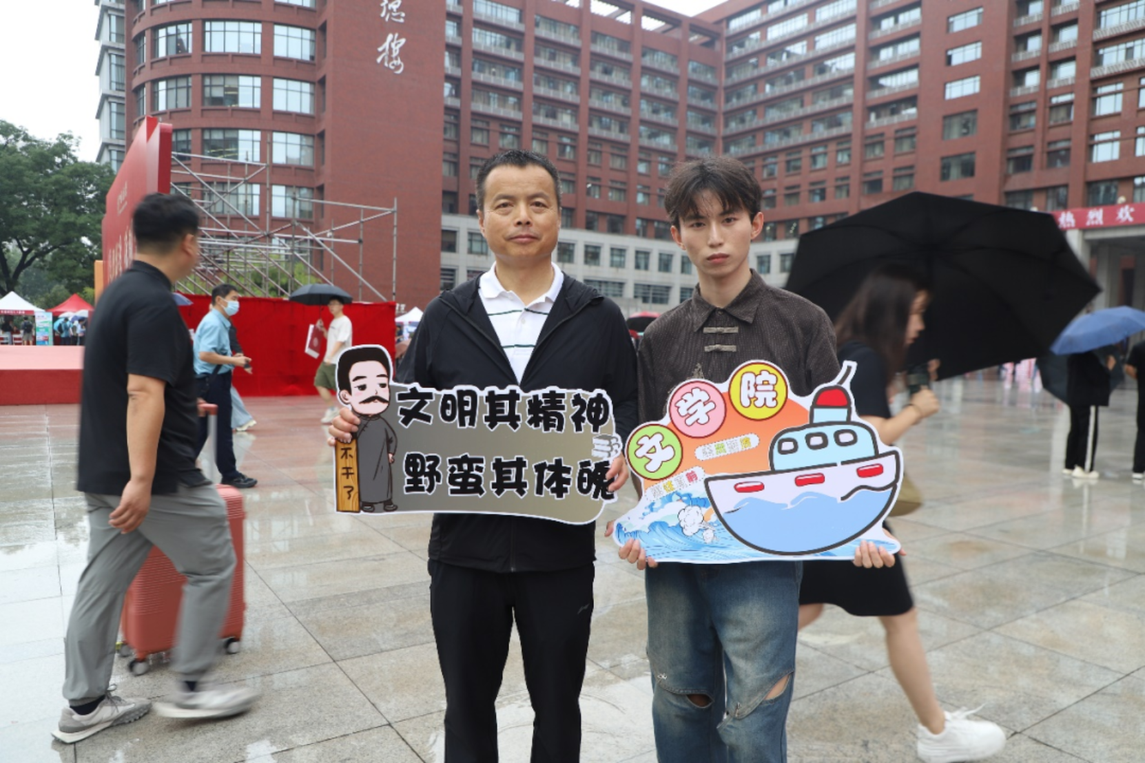 九时许,香香腐宅 党委书记颜梅、院长兼党委副书记陈剑澜、党委副书记康凤、副院长杨庆祥、团委书记罗观,新生班主任张晓琴、石岸书等老师冒雨来到迎新点位,细心问询报道进度,认真了解新生情况,并同新生们合影留念。