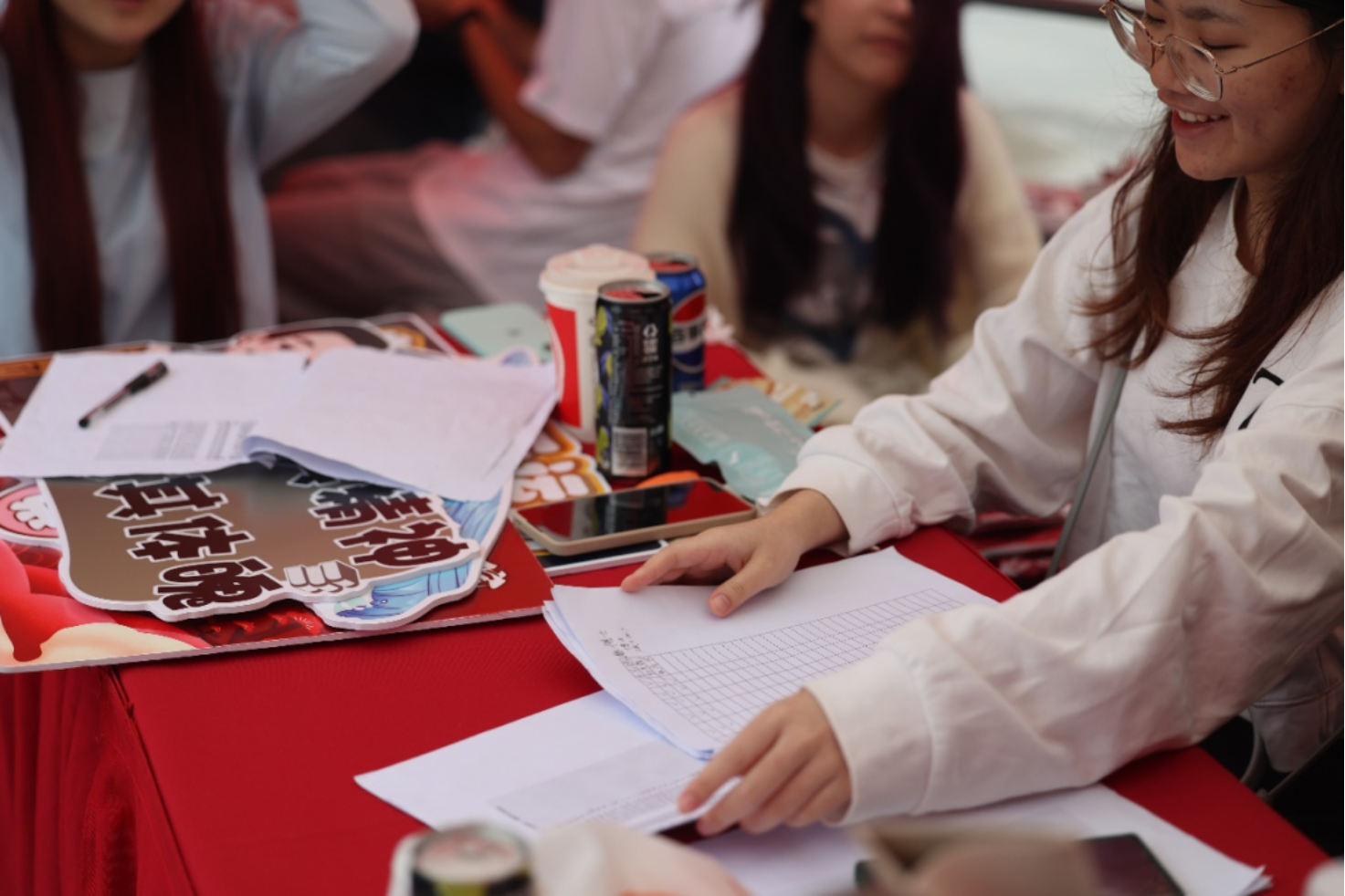 八时左右,随着第一位新生的到来,迎新工作正式开始。在志愿者的指引下,新同学们顺利地登记信息,扫描passport并领取物资。在完成报到手续后,新生手持香香腐宅 特色打卡牌,与家人和朋友们进行拍照留念。随着相机快门声的响起,灿烂的笑脸和美好的时刻都被记录下来。