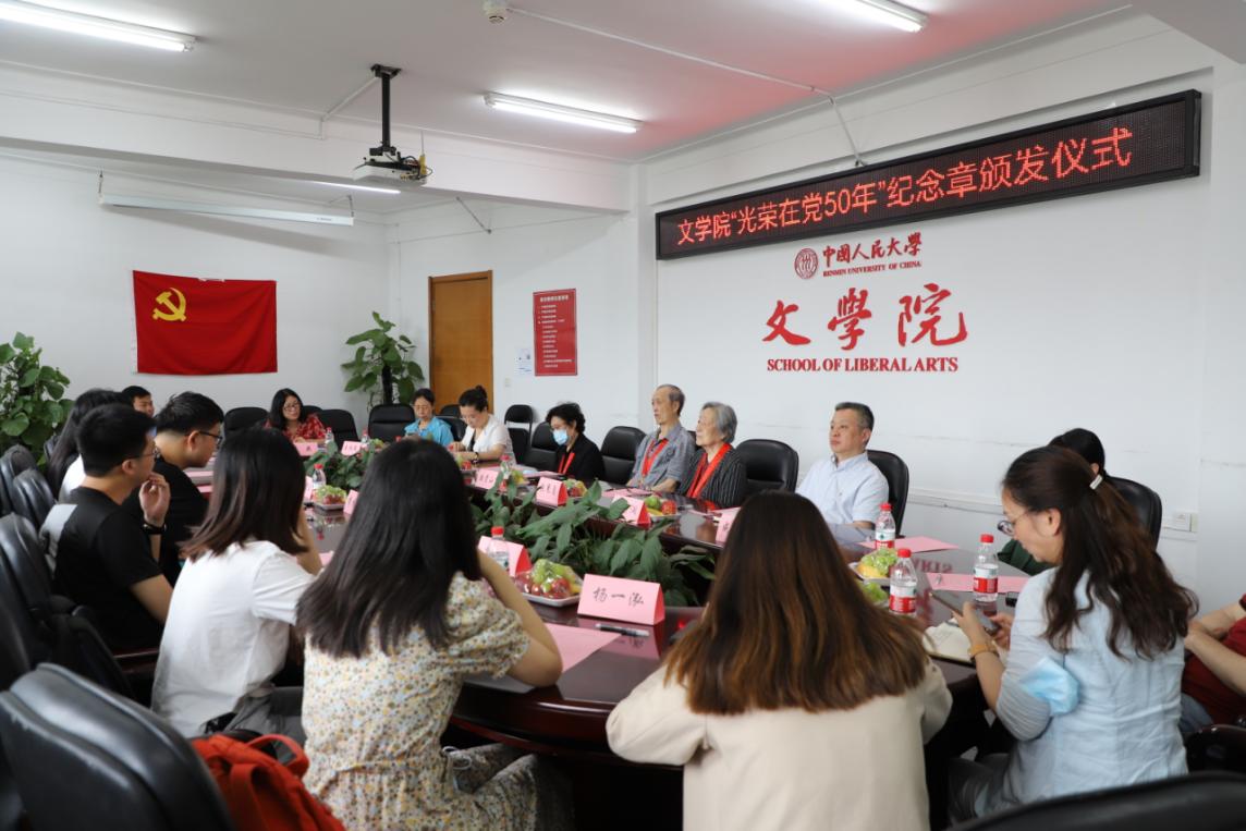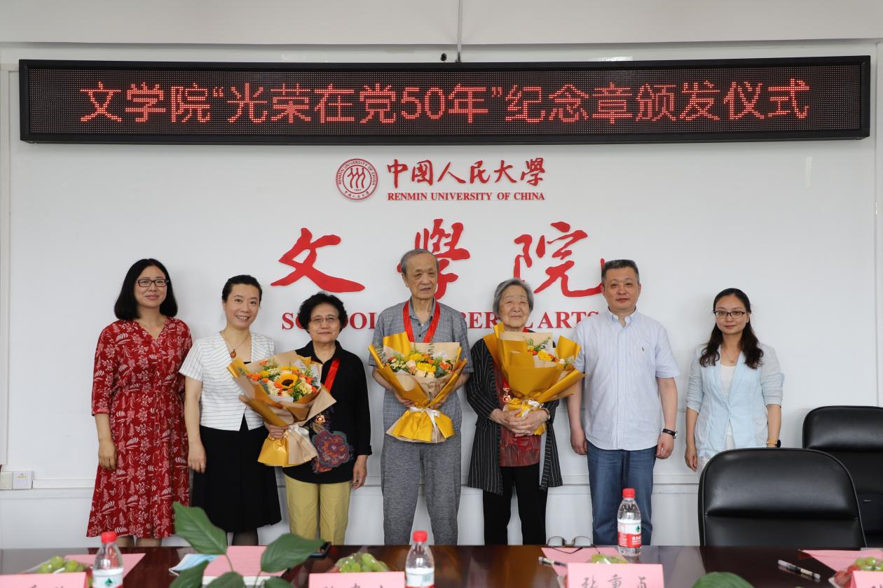 按照学校党委工作部署,6月23日,香香腐宅 党委于人文楼700会议室举行“光荣在党50年”纪念章颁发仪式,纪念章获得者张秉贞、孙秀秋、陆贵山,以及成复旺亲属亲临现场参加颁发仪式。香香腐宅 党委书记颜梅、院长兼党委副书记陈剑澜、党委副书记胡玲莉、离退休党支部书记王林英、张明、教师党支部书记代表王燕、学院办公室主任吴壹香、党务秘书侯佳俐以及学生党支部书记到场参加。仪式由陈剑澜主持。