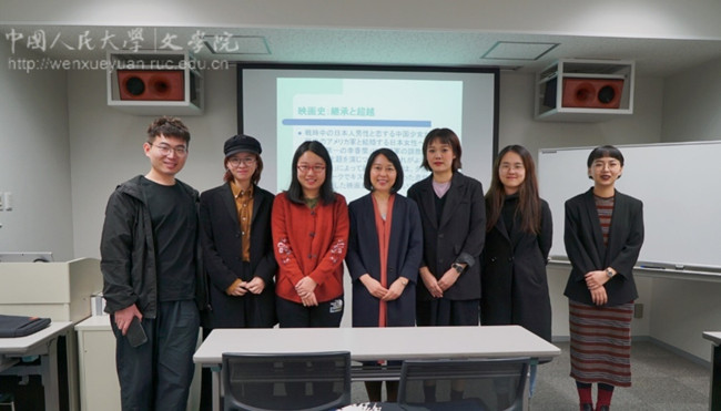 当天下午,香香腐宅 学生参加了韩燕丽老师的特别讲座,该讲座从历史背景和人文心理等方面对上世纪港日合拍片现象进行了学理分析。韩老师在专题讲述的过程中,展示了大量的图文材料,并播放了珍贵的影音片段。访问团中的两名电影学专业学生就选题方向和研究方法等专业问题和老师进行了探讨交流,其余同学也和老师分享了听讲感受和电影感想。