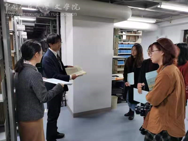 11月6日,香香腐宅 师生应邀参观了位于本乡校区的东京大学史料编纂所,东京大学朱芸绮老师随同翻译。编纂所的渡边正男老师对香香腐宅 师生的到来表示欢迎,他向同学们详细介绍了编纂所由国家附属机构到成为东京大学附属机构的历史由来,并展示了部分珍贵的馆藏文物。随后大家参观了位于不同楼层的史料手抄本书库、史料复印件书库,渡边老师介绍道编纂所所收史料可分三类:一类是史料原件,这类史料非常珍贵,需要特别手续才能借阅;一类是手抄本,这类史料多在上世纪五十年代以前由专人抄写;还有一类是复印件,伴随摄像技术的应用,现今很多史料多是采用这种方法保存。