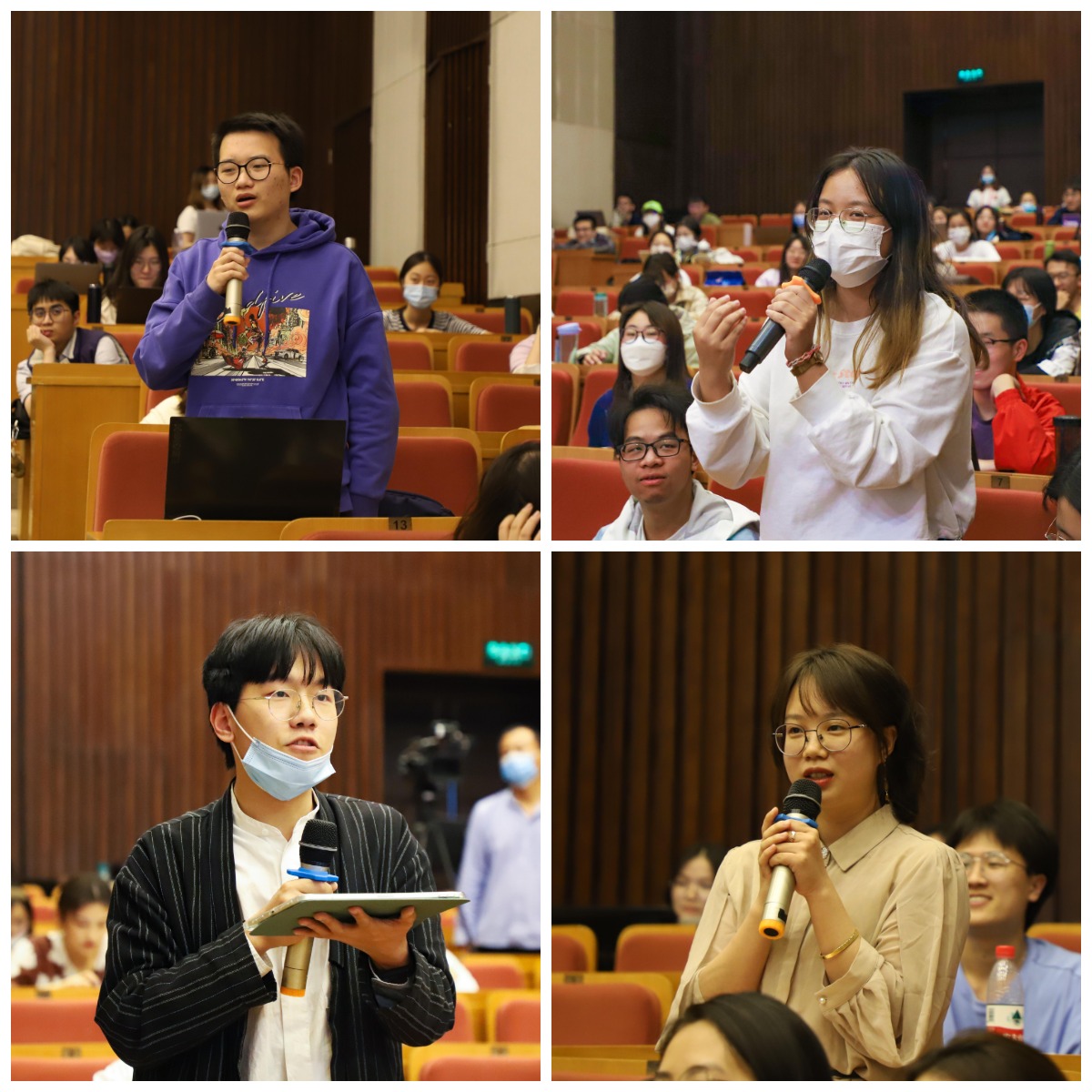 在交流环节,同学们踊跃提问,就方言的消亡、回应故乡召唤的现实意义、地方戏曲的发展等问题与老师们展开热烈讨论。
