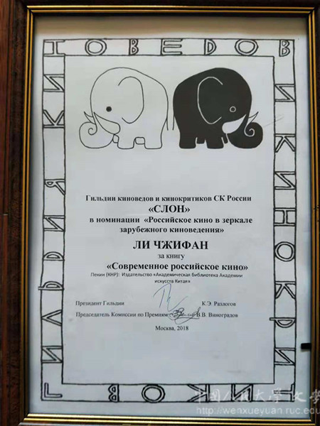 会议期间,谢尔盖教授还向李芝芳老师转发了俄罗斯电影批评学会颁发的“外国电影学中的俄罗斯电影”奖,这一奖项是对李芝芳老师多年学术研究的肯定,同时,也对其他参会学者起到了极大的鼓舞作用。