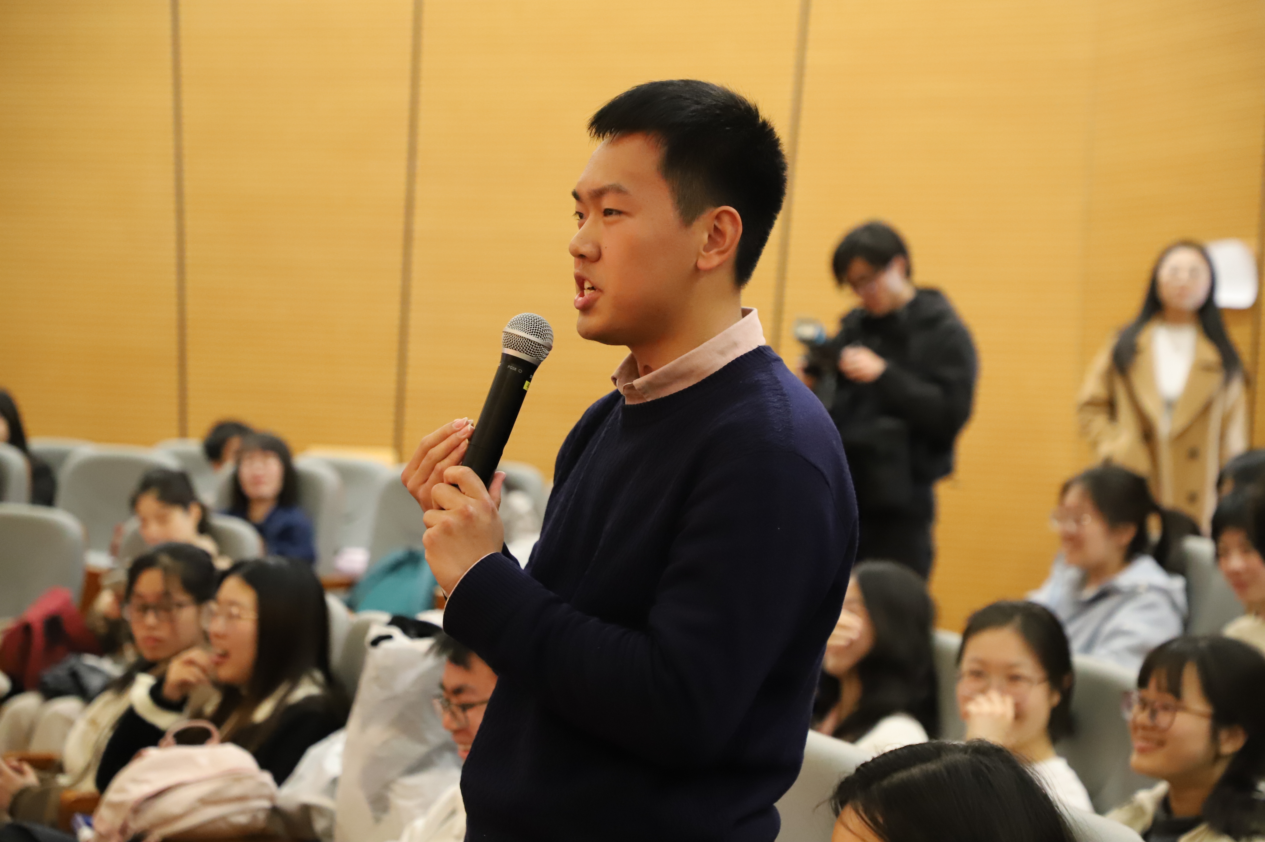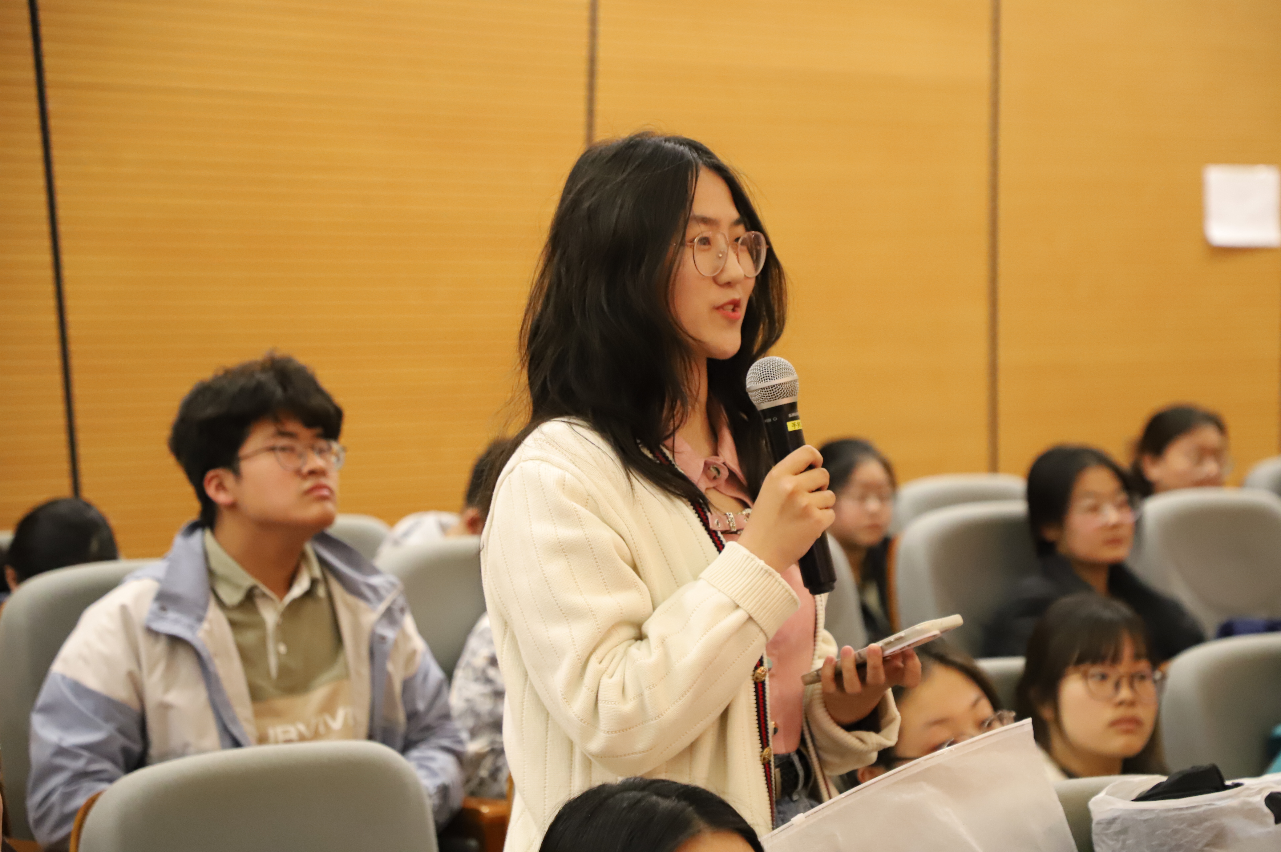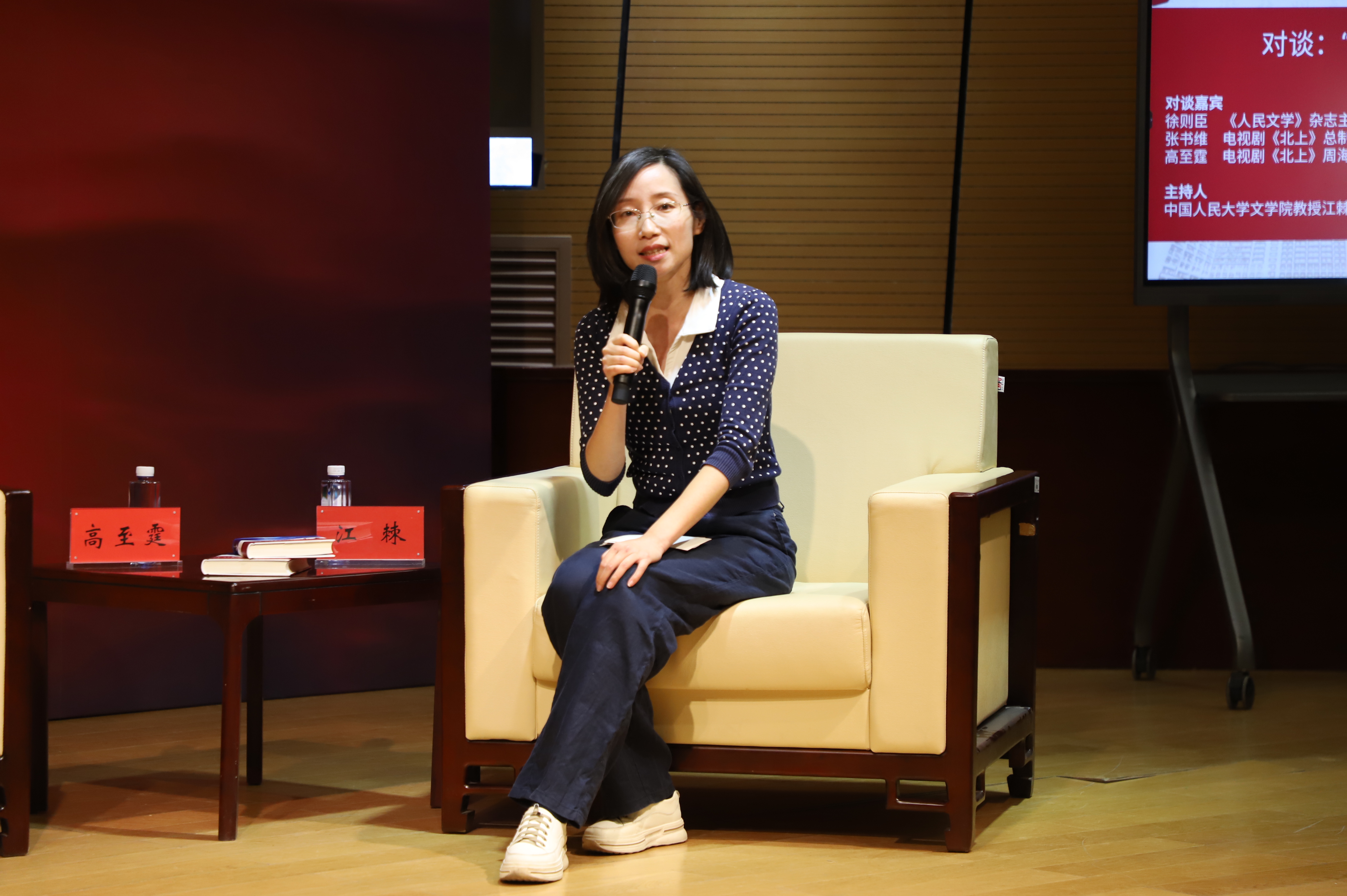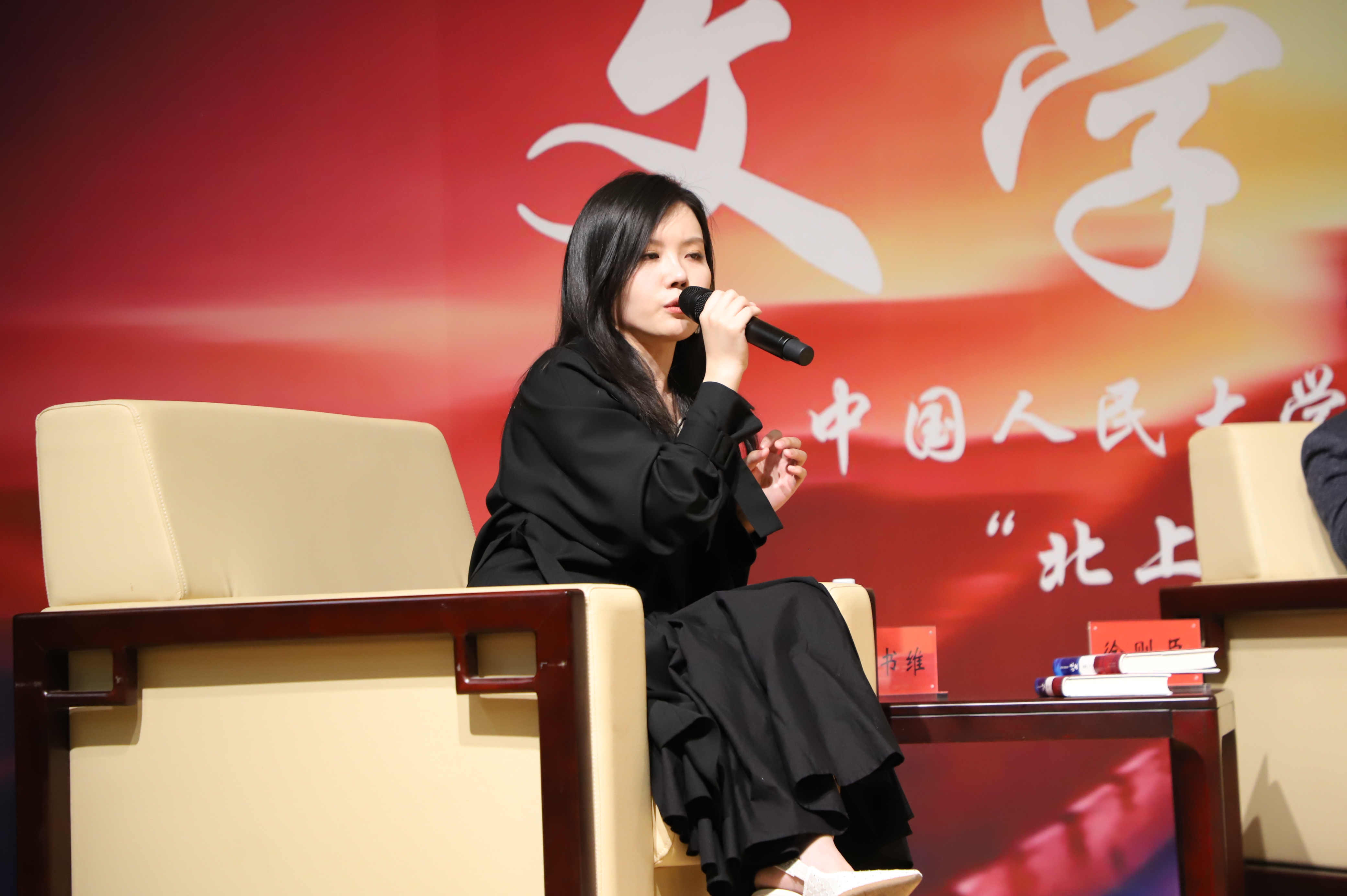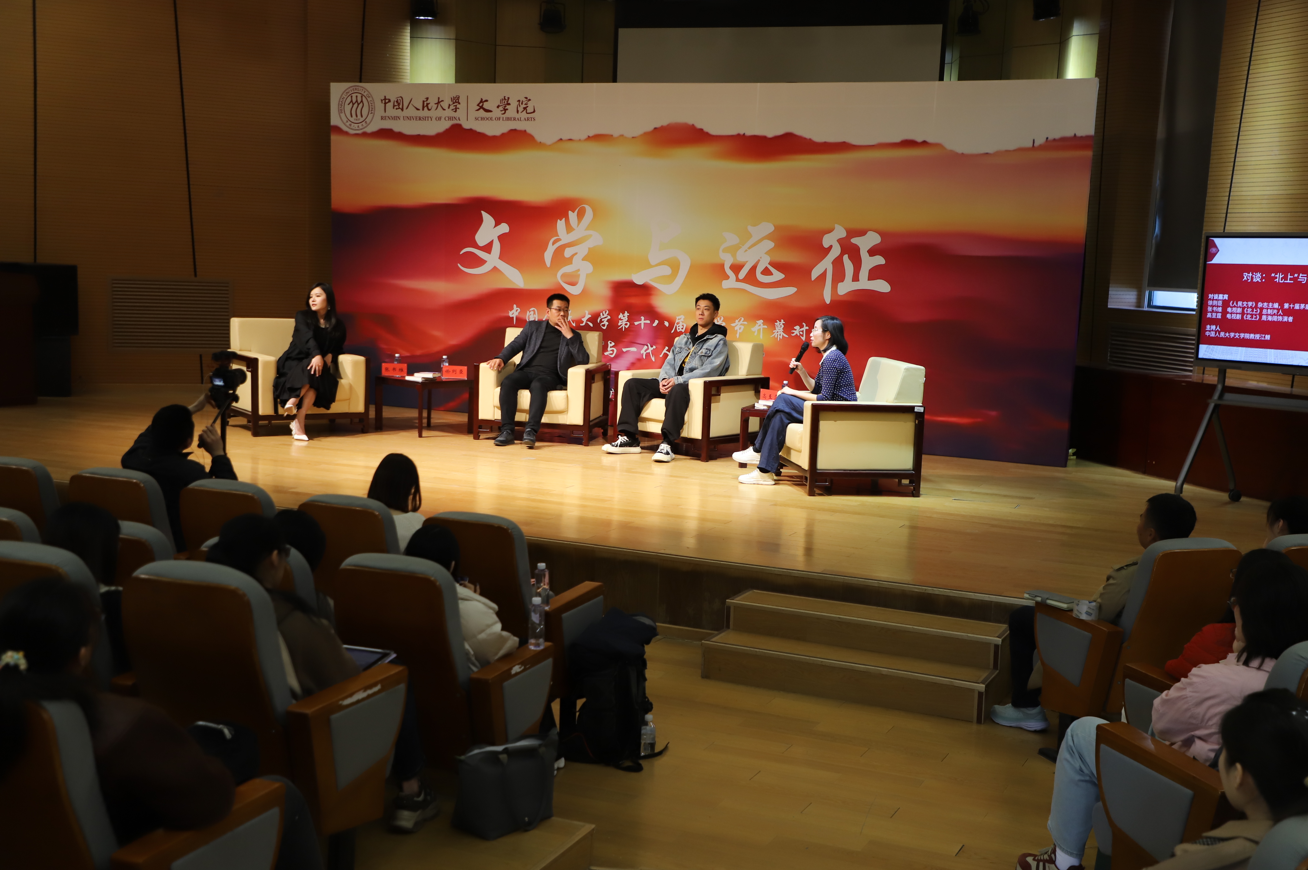 在互动环节,师生们围绕“角色命名”“作品改编”“人物饰演”等展开提问,嘉宾们一一作出回应。活动还向现场的师生代表赠送图书《北上》,以及电视剧《北上》剧组纪念T恤等礼物。嘉宾们与师生合影留念、签名互动,活动在热烈的掌声中圆满结束。