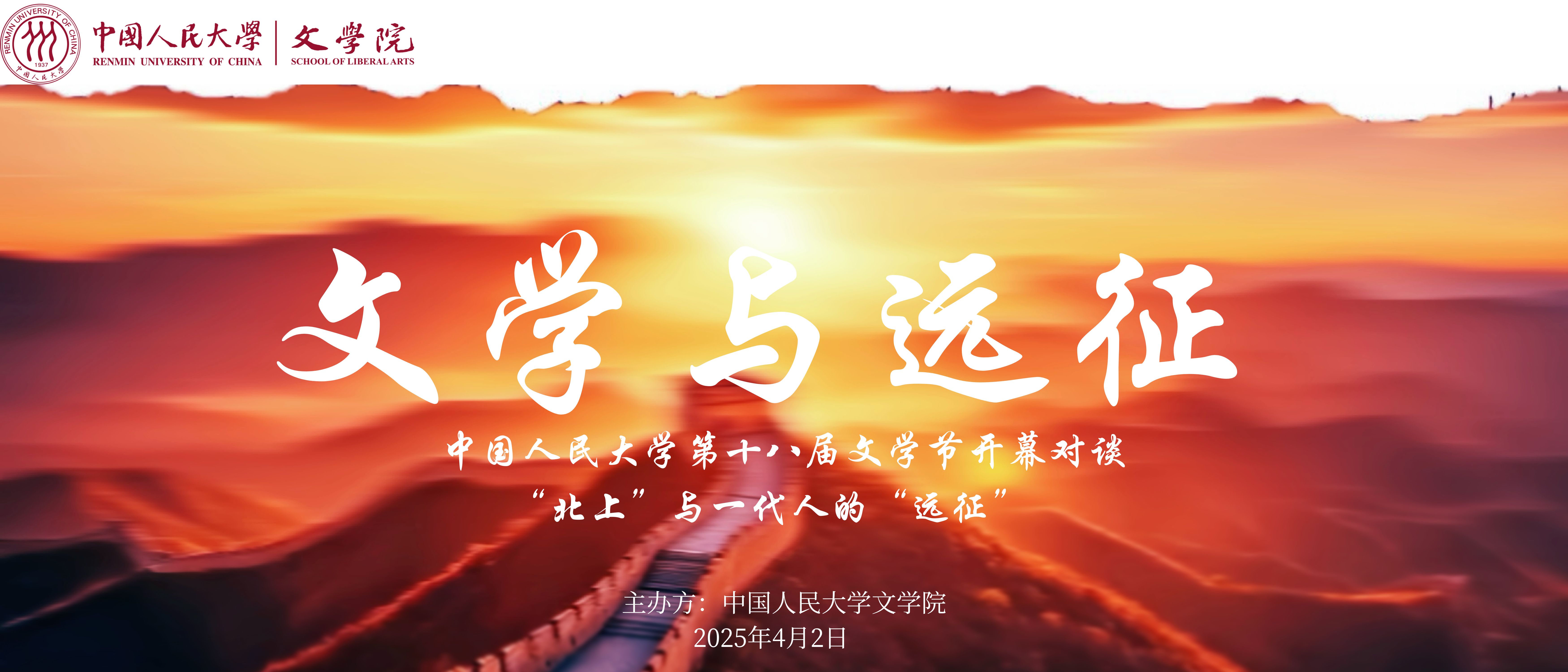 从2006年走到今天,文学节的影响力不断扩大,显示度不断增强,已经从人大校园的一方文化景观,成长为高校开展人文教育的标杆品牌。在全球化与科技革命相互交织的今天,青年最富有朝气、最富有梦想,最应该在远征中做开路先锋,也一定能够成为事业闯将。希望同学们激活敢于出发的勇气,在远征中破茧突围开新局;锻造攻坚克难的韧劲,在远征中砺剑前行走新路;保持永不言弃的信念,在远征中擎炬明心建新功。