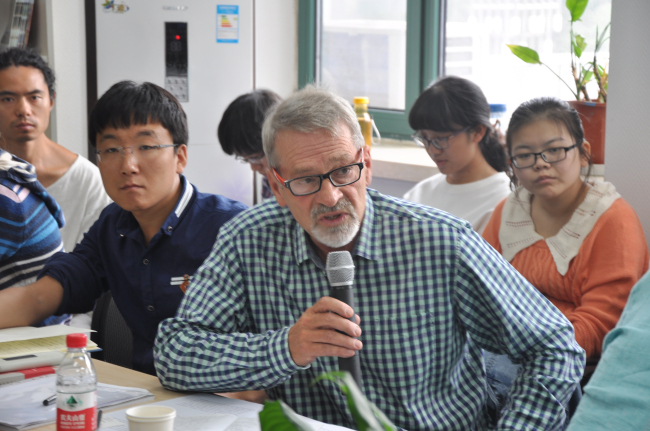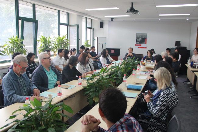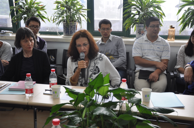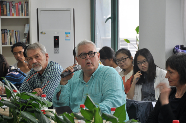 国际写作中心主办,王家新教授主持了此次研讨,张靖博士担任翻译。