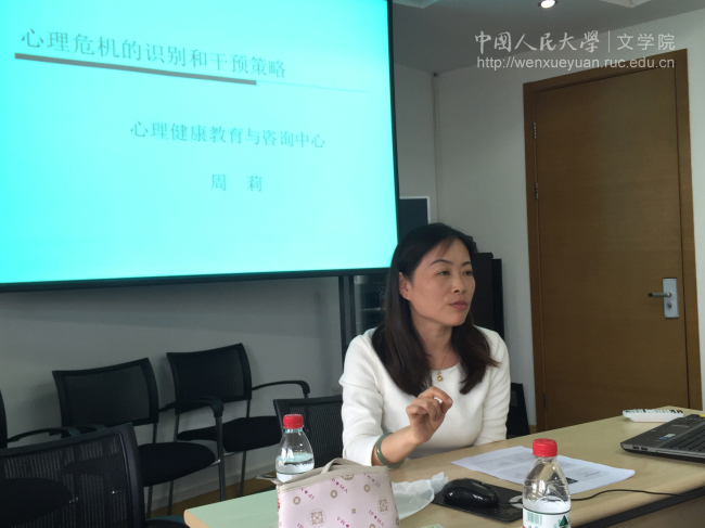 对于负责学生工作的老师,周莉老师则建议大家一定要注重自我调适。基于人的情感是有限的,而与学生沟通往往需要付出情感,所以要协调好工作与生活的平衡发展,培养积极的减压方式来克服职业倦怠。讲座的最后,周莉老师还回答了老师们提出的相关问题,例如为何春季是学生危机事件的高发期等等。