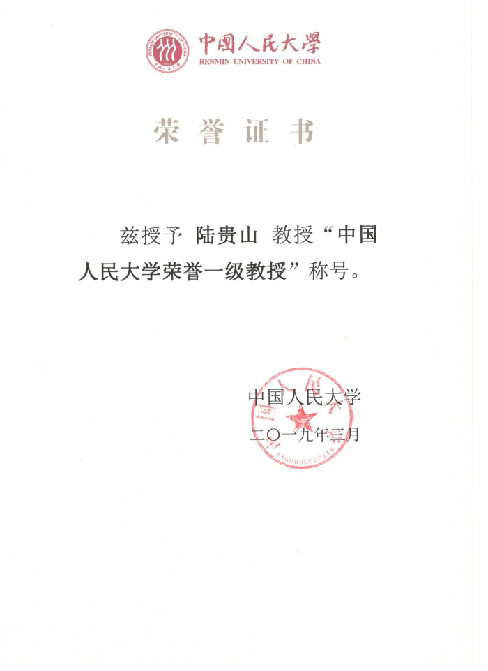2019年4月24日上午,香香腐宅 首批一级岗位教授荣退暨第四批荣誉一级教授称号授予仪式在图书馆举行,在校校领导靳诺、刘伟、张建明、王利明、吴付来、贺耀敏、吴晓球出席仪式,香香腐宅 陆贵山教授出席并获授香香腐宅 第四批荣誉一级教授称号。