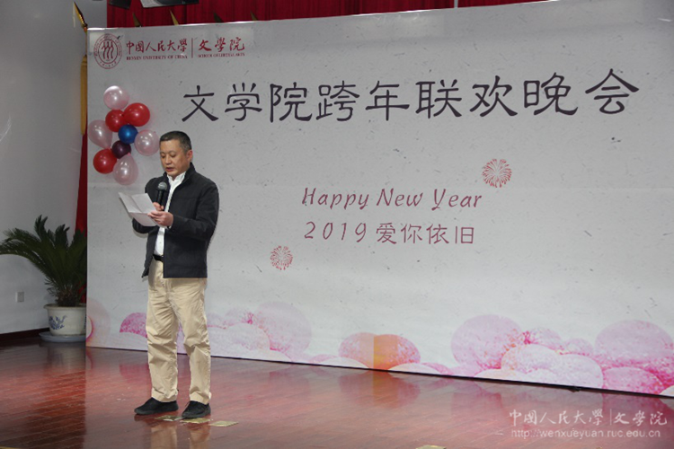 陈剑澜院长致新年贺词。他代表学院对过去一年来辛勤付出的各位老师表示感谢,并祝福同学们在新的一年,能追随梦想,继续前进。同时,他希望,伟大的时代里,每一个文院人都能把握住文学那份使人安静的力量,肩载起时代的责任与担当。
