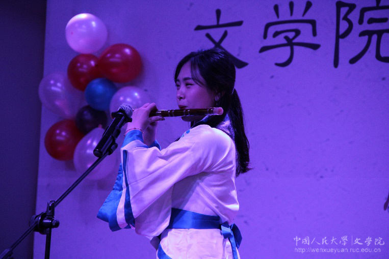 接着,韩国籍留学生金秀与本科生刘宬成分别以笛子吹奏了《茉莉花》和《秦川抒怀》,一者清丽婉转,一者古意盎然,风格迥异而魅力依旧;史涵琪同学一曲古风《琴师》唱出宫帷旧事;来自韩国的留学生徐彩原所唱的《Mercy》则以欢快的调子牵动不羁的青春;最后,朱悦锋、陈东杨、吴润清同学带领全场合唱《嘿,你好吗》,缤纷灯火中,跨年晚会走向尾声。